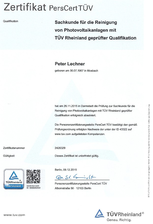 PVR LechnerPhotovoltaikreinigung LechnerAugust- Lutz- Straße 2186732 Oettingen / BayernTel. 09082-920494Mobil: 0160 / 803 68 61info@pvreinigung-bayern.de